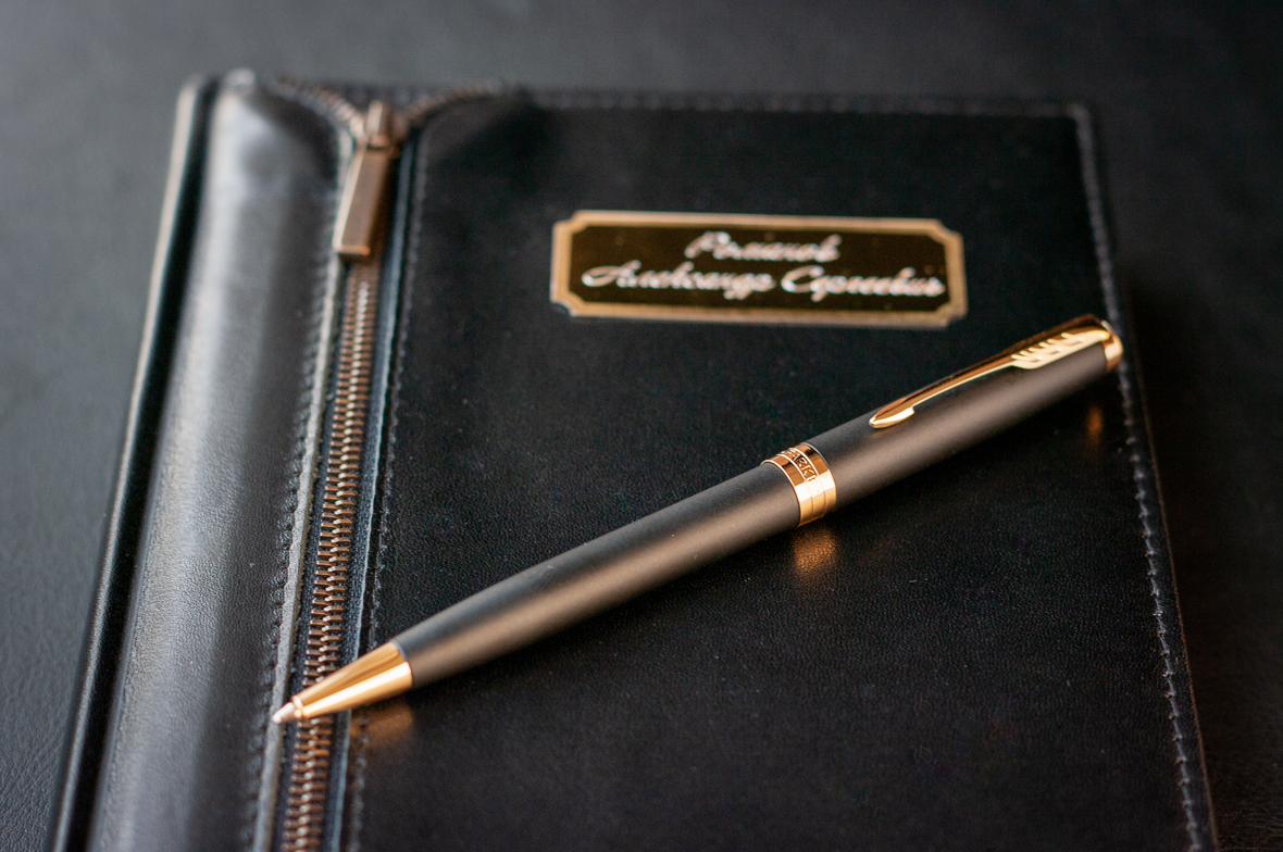 Подарочный набор VIP Ежедневник и ручка Parker Sonnet Matte Black GT от официального дилера Parker в Ачинске. Вы можете дополнительно заказать гравировку, которая подчеркнет Вашу оригинальность и придаст памятность статусному подарку. Все ручки Паркер поставляются в фирменном футляре.